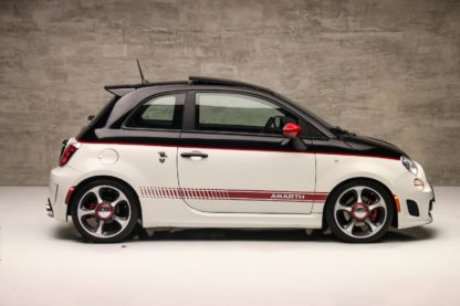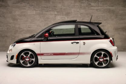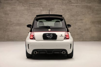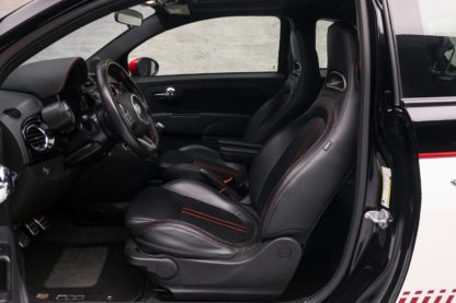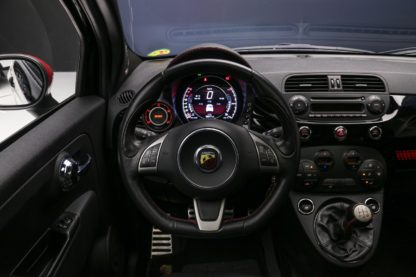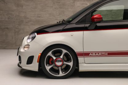 O Fiat 500 Abarth é um verdadeiro “pocket rocket”, um esportivo compacto com motor 1.4L de 4cil turbo que entrega 167 cv e 23 kgfm de torque. Ele acelera de 0 a 100 km/h em 6,9 segundos, pode chegar até os 215km/h. Tudo isso entregue por uma tração dianteira e um câmbio manual de 5 marchas, com a proposta de ter uma dirigibilidade ágil e ideal para curvas. A transmissão é manual de cinco marchas e o carro traz detalhes visuais únicos, como dupla saída de escape e faixas laterais, essa unidade ainda recebeu alguns detalhes que remetem ao 595 Competizione.